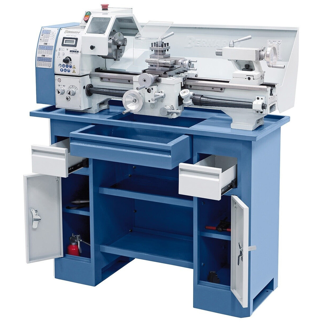 Diese hochwertige Metalldrehbank von Bernardo, die zur Produktgruppe der Drehmaschinen gehört, ist ideal für den Einsatz im Heimwerkerbereich sowie in kleineren Werkstätten. Mit einem Gewicht von 120 kg und Abmessungen von 121 x 61 x 45 cm ist sie robust und bietet eine stabile Arbeitsgrundlage. Zur Ausstattung gehören Werkzeug und ein Futterschutz, was den sofortigen Einsatz und die Sicherheit während des Betriebs gewährleistet. Entdecken Sie die vielseitigen Möglichkeiten dieser Maschine für Ihre Projekte im Bereich der Metallbearbeitung.