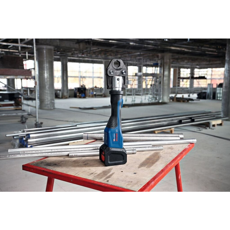 Dieses Akku-Presswerkzeug arbeitet mit einer Akkuspannung von 18 V und wird durch ein zuverlässiges Akkusystem von Bosch angetrieben. Es ist mit einem bürstenlosen Motor ausgestattet, der für eine lange Lebensdauer und effiziente Leistung sorgt. Mit einer beeindruckenden Presskraft von 34 kN lassen sich verschiedene Materialien mühelos bearbeiten. Das Betriebsgeräusch beträgt dabei angenehme 76 dB.
