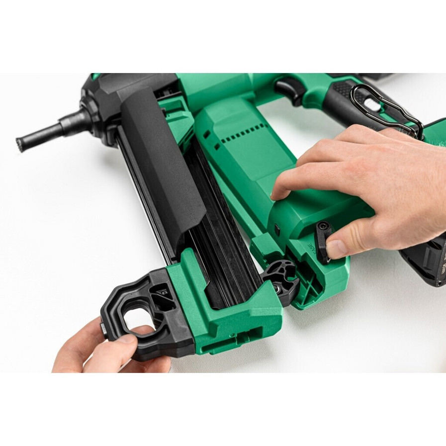 Dieser Akku-Nagler ist mit einem bürstenlosen Motor ausgestattet, der für eine längere Lebensdauer und verbesserte Effizienz sorgt. Die integrierte Tiefeneinstellung ermöglicht präzises Arbeiten, während die Trockenschuss-Sperre zusätzliche Sicherheit bietet und Beschädigungen verhindert. Ein praktisches LED-Licht beleuchtet den Arbeitsbereich optimal und sorgt auch bei schlechten Lichtverhältnissen für gute Sicht.