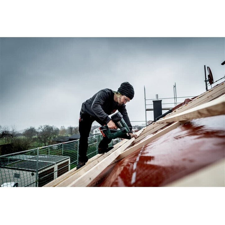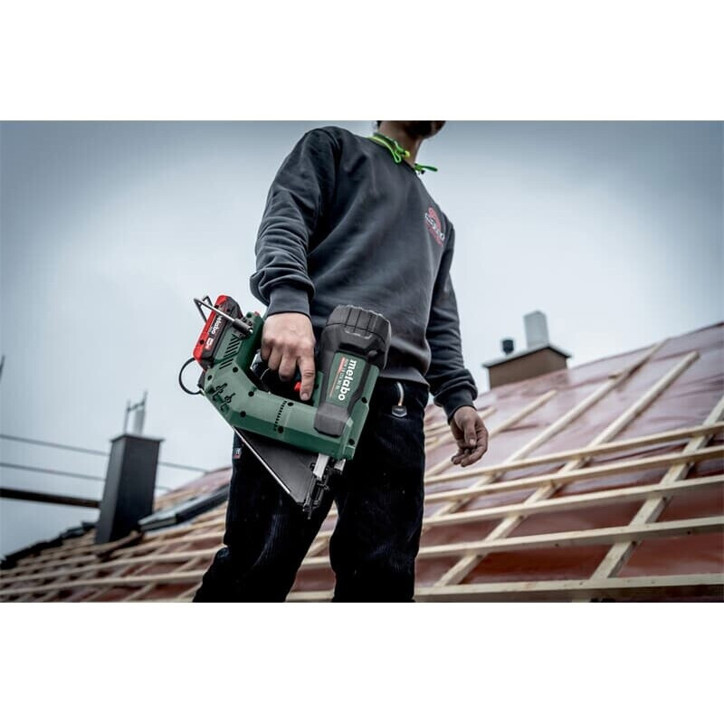 Im Lieferumfang des Akku-Naglers sind weder Akku noch Ladegerät enthalten, um eine individuelle Anpassung an bestehende 18V Metabo Systeme zu ermöglichen.