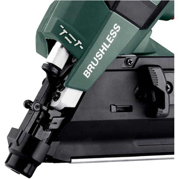 Mit einer Nagellänge von bis zu 90 mm bietet der Metabo NFR 18 LTX 90 BL eine hohe Leistungsfähigkeit für verschiedene Befestigungsaufgaben. Die Energieversorgung erfolgt über ein leistungsstarkes 18 V Akkusystem, wobei das Gerät ohne Akku und Ladegerät geliefert wird, was den Austausch oder die Erweiterung bestehender Metabo 18 V Akku-Systeme erleichtert. Die Akkukapazität beträgt 4 Ah, was eine lange Betriebsdauer sicherstellt. Eine wichtige Funktion ist die integrierte Sicherheitsnase, die für präzises und sicheres Arbeiten sorgt.
