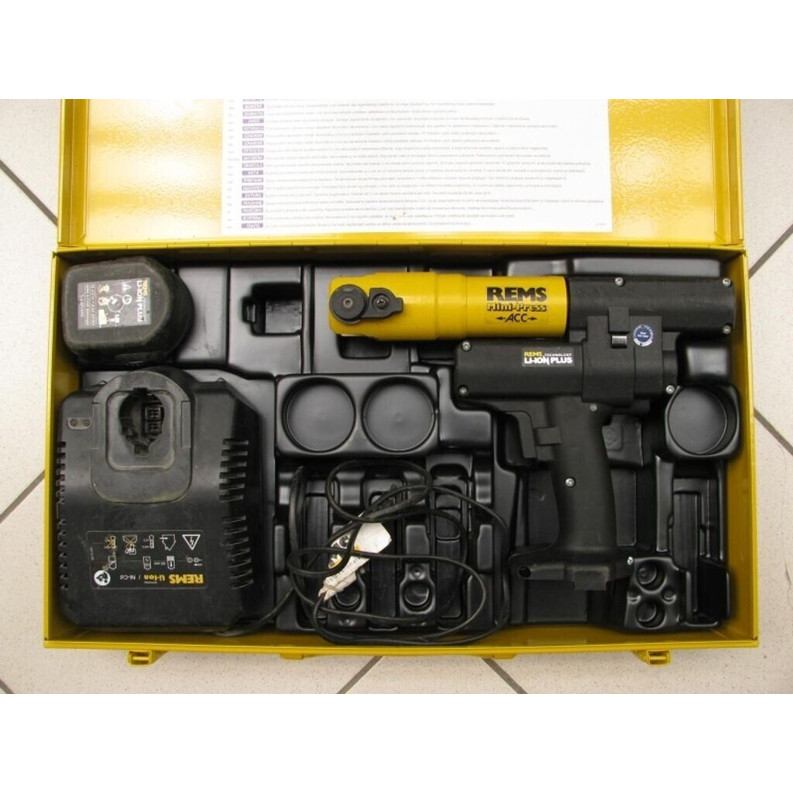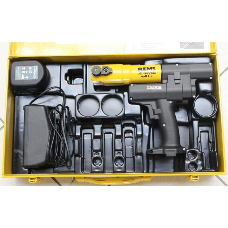 Im Lieferumfang der Rems Mini-Press ACC Li-Ion sind ein Schnellladegerät und ein praktischer Koffer enthalten.